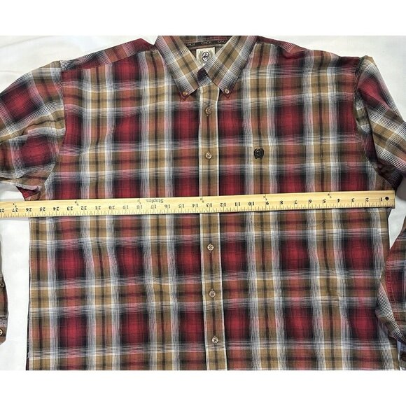 CINCH MEN'S XL 100 % COTTON PLAID RED/BROWN LONG SLEEVE COLLAR WESTERN SHIRT