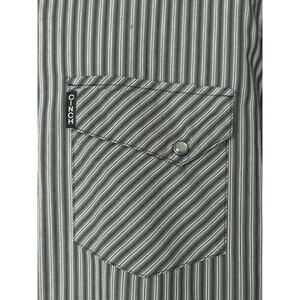 The CINCH Men's Western Modern Fit Pearl Snap Long Sleeve Shirt in Gray Stripe is a versatile and stylish button-down shirt perfect for various occasions such as travel, parties, casual outings, formal events, and workwear. Made from 100% cotton, this shirt features a striped pattern, a collared neckline, and snap closure with pearl snaps. The shirt also includes accents like plaid sleeve accents, aqua blue stitching, and logo buttons on sleeves, adding a touch of Western flair. With a regular fit and size L, this shirt is machine washable and ideal for year-round wear.