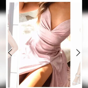CINDERELLA DIVINE sz.2 Metallic Glitter Evening Formal Dress Champagne High Slit