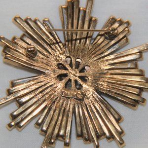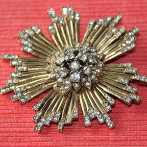 CINER Vintage Starburst Brooch Pin Gold Metal Rhinestones Costume Jewelry