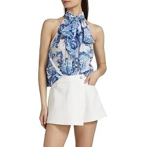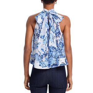 Add effortless elegance to your wardrobe with this Rashan Sleeveless Top from Cinq à Sept, adorned in a romantic Coastal Bouquet floral print. Crafted from a soft blend of cotton and silk, this airy A-line blouse features a delicate tieneck detail and a keyhole back button closure for a graceful finish—perfect for layering under a blazer or wearing solo with denim or trousers.
