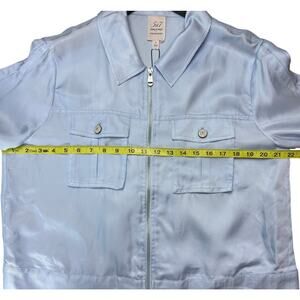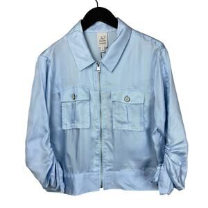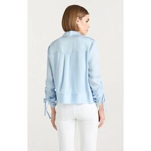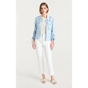 CINQ A SEPT Dale Ruched Sleeve Cupro Blue Satin Jacket