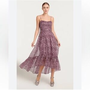 CINQ A SEPT Inkstrokes Daria Silk Sundress in Dark Plum Adorned in a swirling brushstroke-inspired pattern