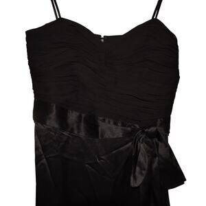 CINQ A SEPT NEW $495 Black Vienna Bow Silk Midi Dress Ruched Size 0