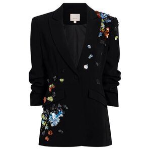 CINQ A SEPT Sequin Flower Scrunched Cheyenne Blazer Size S/M, 6 US