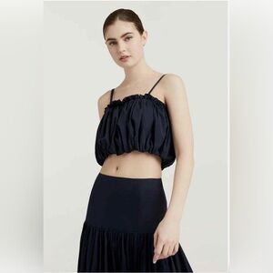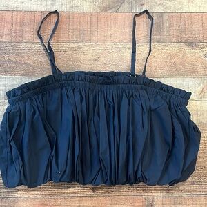 CINQ A SEPT Shirt Womens Large Navy Blue Ivee Crop Tank Bubble Top Large