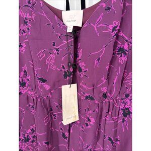 CINQ A SEPT Size Medium MABEL PURPLE FLORAL SILK BLACK VELVET RUFFLE BLOUSE TOP