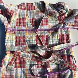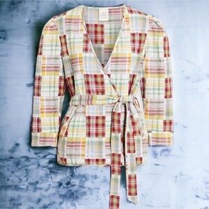 Great condition! Please note size tag is missing but fits like a Small. Front button is a little loose but okay. Really cute and well made. Soft cotton. Quilted style is very on-trend.