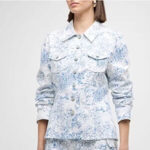 CINQ A SEPT WOMENS GARDEN BLUE TOILE SCRUNCHED SLEEVE CANYON JACKET BUTTON UP 14