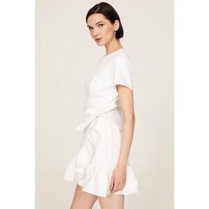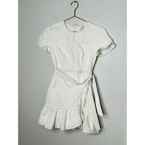 CINQ A SEPT White Cotton Crewneck Denim Wrap Mini Ruffle Josi Dress Size 2