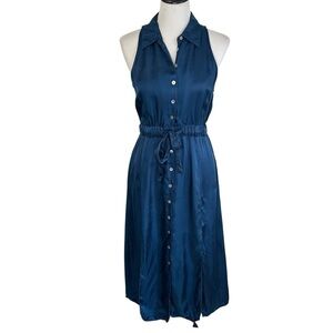 CINQ A SEPT Womens Joyce Sleeveless Tie Waist Satin Midi Dress Sz 4 Button Up