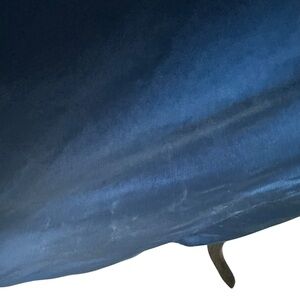 Dress has an elastic drawstring waist in good used condition with some deep wrinkles and snagging shown in photos.