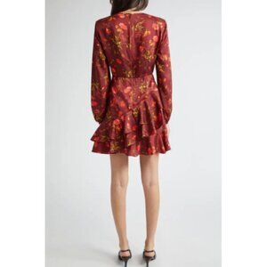 Cinq a Sept 'Alice' mini-dress featuring cascading ruffle trim and an allover floral print on smooth satin.