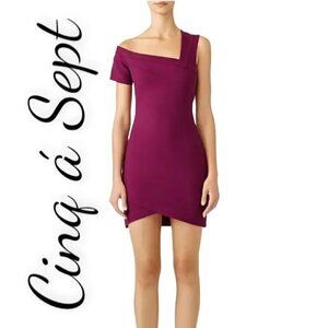 CINQ Á SEPT Coralisa Raspberry Asymmetric Cocktail Sheath Dress, Size 10