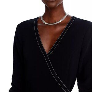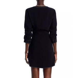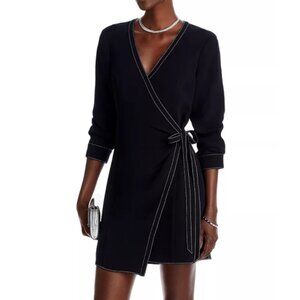 Cinq à Sept 'Chelsea' dress featuring wrap-front styling, contrast stitching details and 3/4-length ruched sleeves.