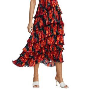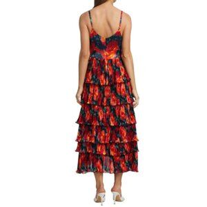 Cinq à Sept 'Daydream Joey' dress featuring an eye-catching, vivid print on layers of pleated chiffon.