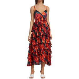 CINQ À SEPT 'Daydream Joey' Tiered Pleated Midi-Dress, Navy Multi