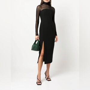 The Ivanna midi-dress by Cinq à Sept is finished with a sheer mesh upper bodice.
