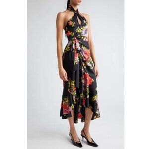 Cinq à Sept 'Josie' dress featuring a twisted halter-neckline, stunning floral print and cascading ruffled hem.