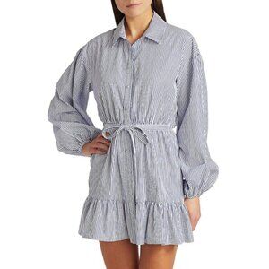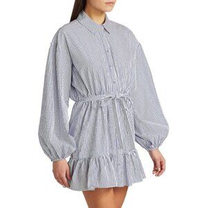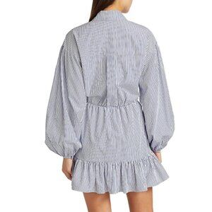 CINQ À SEPT 'Kelly' Balloon-Sleeve Ruffle-Hem Mini-Dress, Blue/White