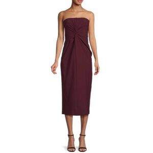 CINQ À SEPT Mckenna Strapless Knot Midi Sheath Dress Calla Lily Size 14 NWT