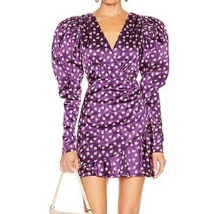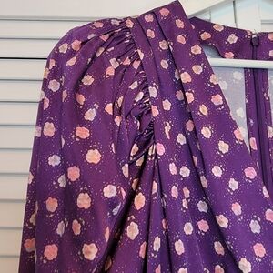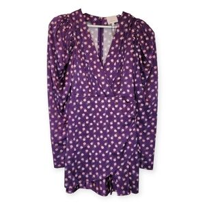 CINQ À SEPT Micro Floral Mini Sheath Wrap Dress Long Puff Sleeve Women 6 Purple