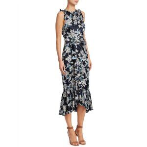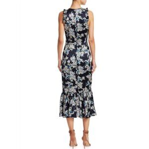 CINQ À SEPT 'Mirna' Floral-Silk Ruffled Midi-Dress, Navy Blue Multi