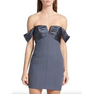 CINQ À SEPT Teo Ruched Satin Sheath Mini Dress Blue Womens Size 14