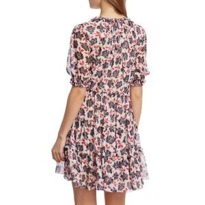 Cinq a Sept 'Tish' mini-dress featuring frilly, ruffled trims and an allover-floral print on an airy chiffon fabrication.
