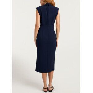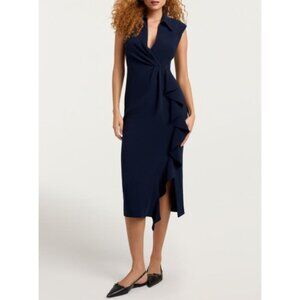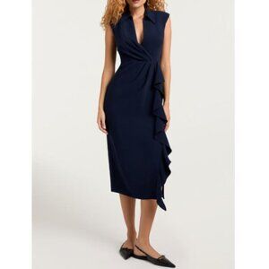 CINQ À SEPT 'Tori' Wrap-Style Ruffled Sleeveless Crepe Dress, Navy Blue