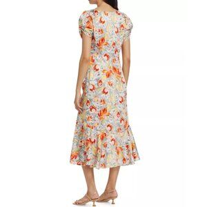CINQ À SEPT 'Walker' Linework-Floral Midi-Dress, Ivory Multi
