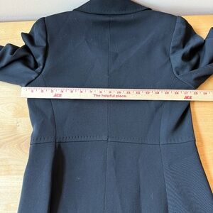 Size 44 - US 8, solid black, fully lined, 3-button closure, collar, side pockets, knee length, 99% wool.