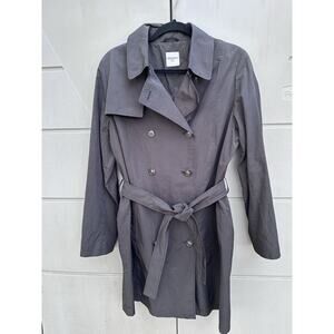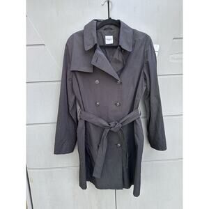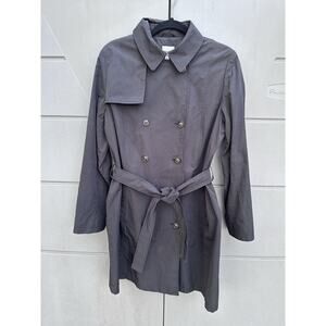 CINZIA ROCCA Due Black Trench Coat Double Breasted Pockets Sz 14 Rainproof Tech