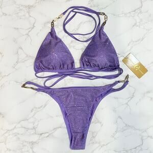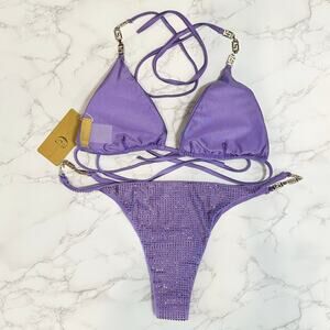 CIOCCOLATO CRYSTAL PURPLE Triangle Top & Skimpy Bottoms BIKINI $385