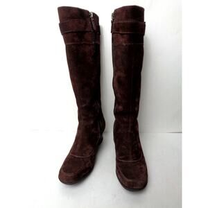 CIRCA JOAN & DAVID Tonia 6M Brown Suede Leather Wedge Heel Knee Zipper Boots