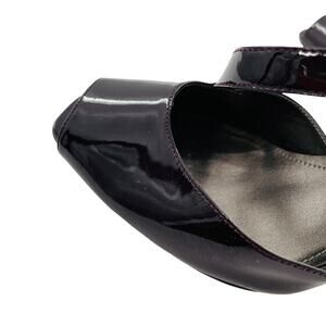 Details: Stylish slingbacks in a half d-'Orsay style with elastic heel strap and peep toe. Color is a very deep wine in a patent leather finish. Stiletto 4" heel.