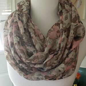 Colors pink, white, black and tan. 100% Polyester. Like-new.