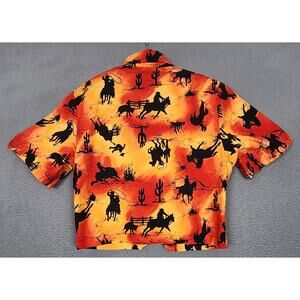 CIRCLE T BY MARILYN LENOX Top Womens Small Red Keyhole Neck Western Cowboy Horse