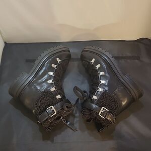 CIRCUS BY SAM EDELMAN WOMEN'S GRETCHEN SHEARLING HIKER BOOT SIZE 71/2COLOR BLACK High style has never felt so good. Our Gretchen Fuzzy Hiker Bootie is an upgraded version of traditional hiking footwear with a soft shearling panel and criss-cross lacing.Lug Sole Fuzzy Hiking Bootie Closure Zipper Toe Round Heel Height 1.5 inches