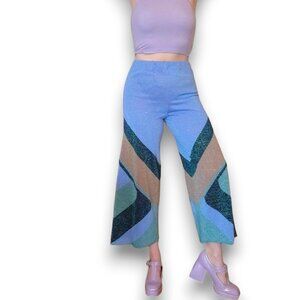 blue green tan glitter shimmer palazzo wide leg italy high rise waist colorful mod 60s vintage