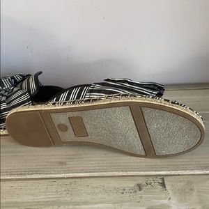 Round toe - Solid vamp - Bow accent - Whipstitch detail - Slip-on - Lightly padded footbed - Espadrille midsole - Grip sole- flexible upper and sole. Not stiff
