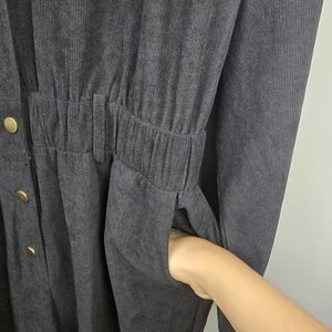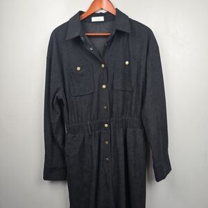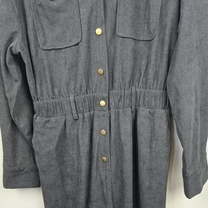 CISA Corduroy Long Sleeve Utility Jumpsuit Snap Buttons Black Womens Sz L Tomboy