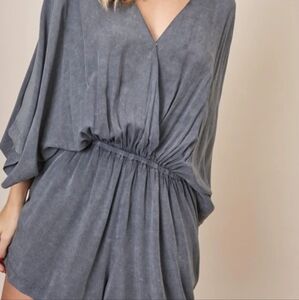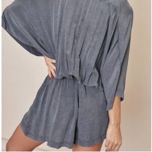 kimono Romper with cinched waist, pockets and front button clasp, lightweight