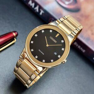 CITIZEN AU1062-56G AXIOM BLACK DIAMOND DIAL GOLD STAINLESS BRACELET MENS WATCH