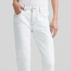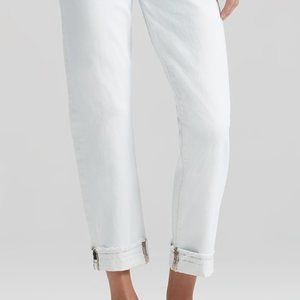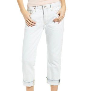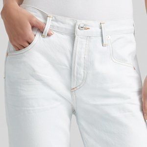 CITIZENS OF HUMANITY Emerson Cuff Slim Boyfriend in Solar. Almost-white denim with undone hem. Non-stretch. Rests on hips. Relaxed fit through thighs and ankles, button fly. 100% Cotton. Brand new, never worn.