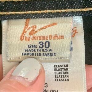 Size 30. Like new condition. 5 pocket zip front style with branded button closure. Frayed hems. Whiskering. 98% Cotton, 2% Elastane. Approximate measurements (taken when laying flat - cannot guarantee fit):