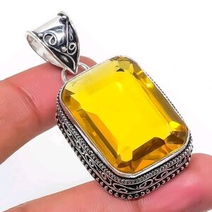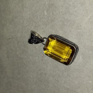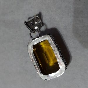 Stamped Sterling Silver Pendant. Stone: Man-Made Citrine. See pictures for measurements. NonSmoking home