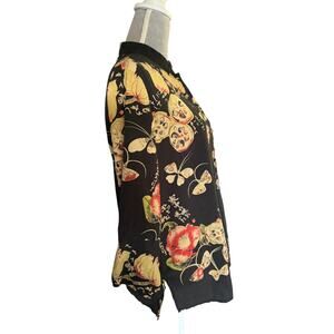 • Color: Black with multicolor floral and butterfly print (red, gold, cream)