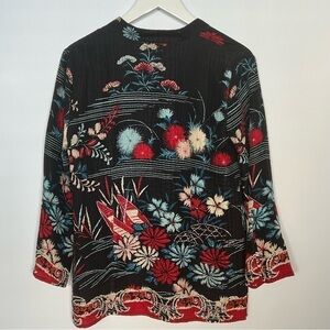 Island Asian artistic artsy lightweight washable Silk blouse Santa Monica Citron washable silk blouse, floral print top, black red silk blouse, artsy silk blouse, textured silk top, CITRON Santa Monica