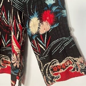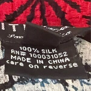 This CITRON silk floral blouse combines classic elegance with artistic flair. Crafted from washable silk, it features a textured design with a vibrant black and red floral pattern.